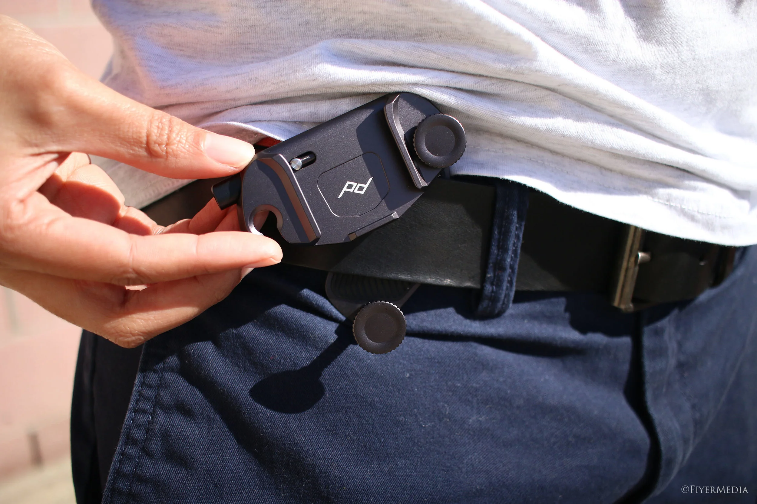 One of the coolest things about the clip is that you can attach to your belt. Have easy access to your camera at your hip which is very useful if you do not want to carry your camera bag on a quick photoshoot.